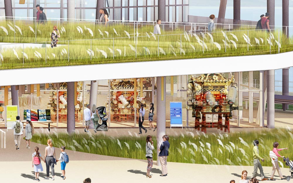 古代から国際交流のゲートであり続けた大阪・関西の海や大地との関係をセレブレートする、生命のような建築です。