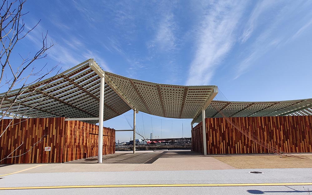 ギャラリー WESTは、廃棄食材や食品残渣から制作するベジタブルコンクリートを用いて作られています。