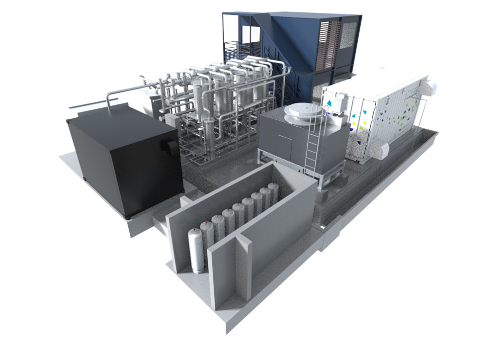 本設備は、ボイラ排気ガスから温室効果ガスであるCO2を回収し、再利用することをコンセプトとしています。